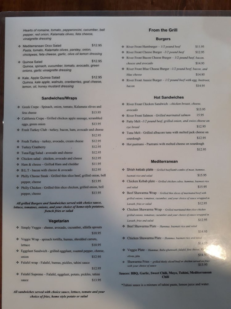 With convenient outdoor seating, free Wi-Fi, and a pet-friendly policy, River Front Cafe is more than just a meal—it's an experience you won’t want to miss. Enjoy excellent service, a relaxed atmosphere, and a feast that satisfies all your culinary desires.