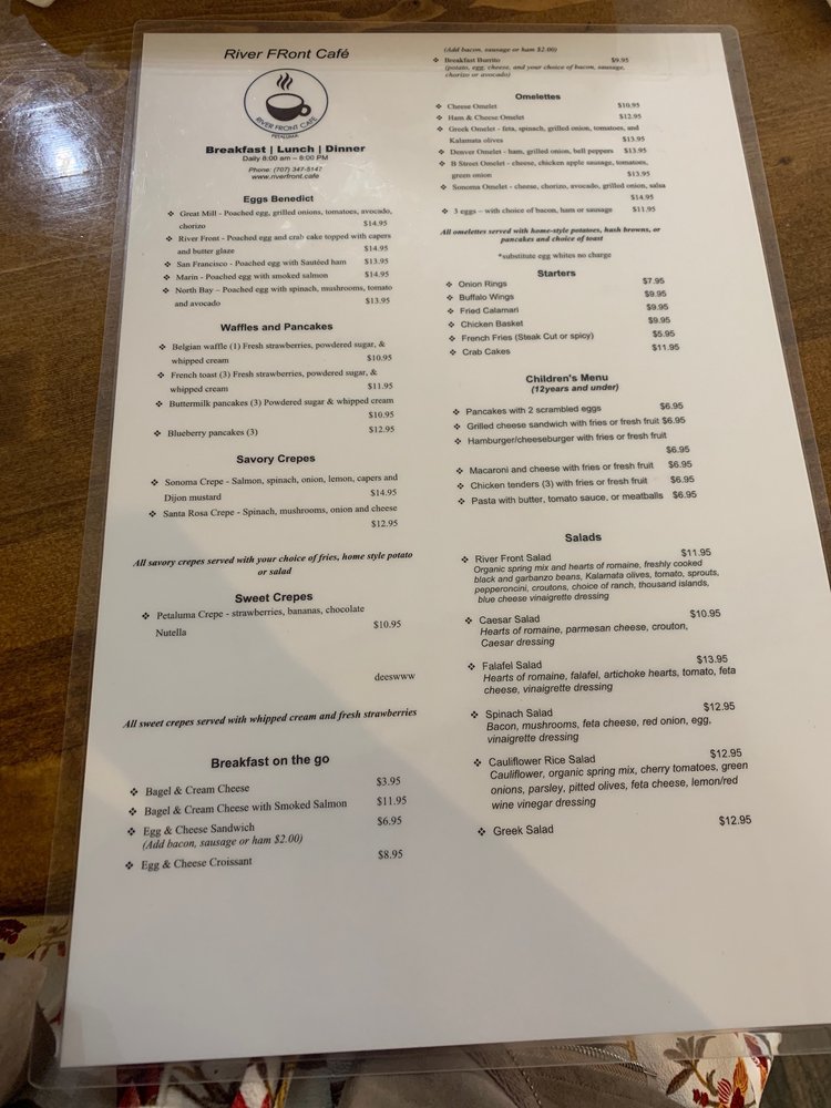 Welcome to River Front Cafe, a charming escape alongside Petaluma River that embodies the casual spirit of American cafes. With a diverse menu perfect for breakfast, lunch, and dinner, this vibrant spot caters to all appetites. Indulge in delicious options like the rich Belgian Waffle and hearty Eggs Benedict selections, which elevate classic flavors to new heights.